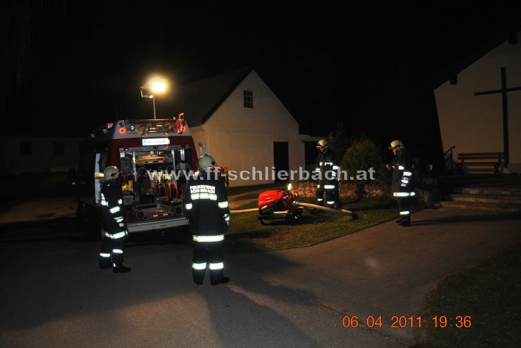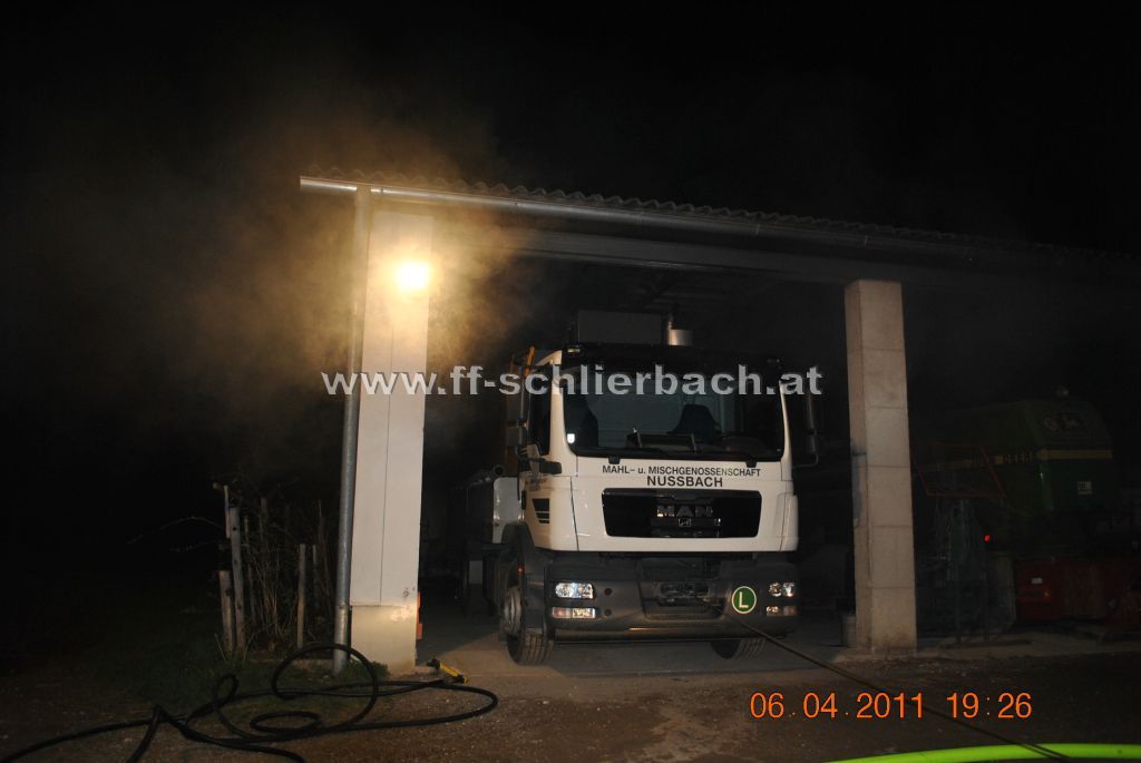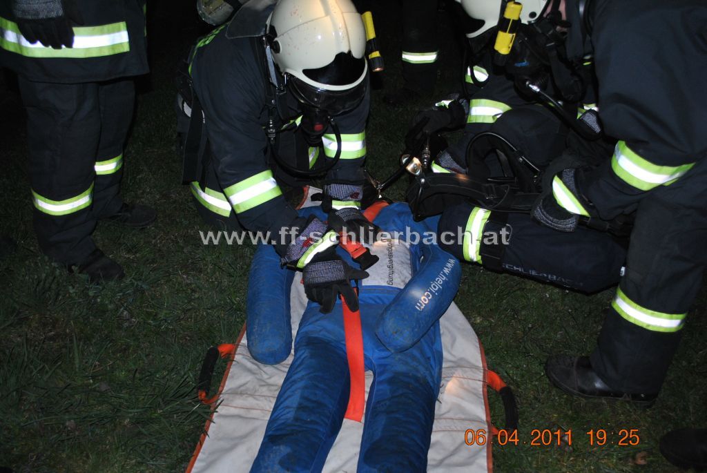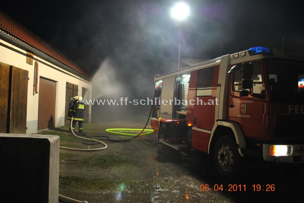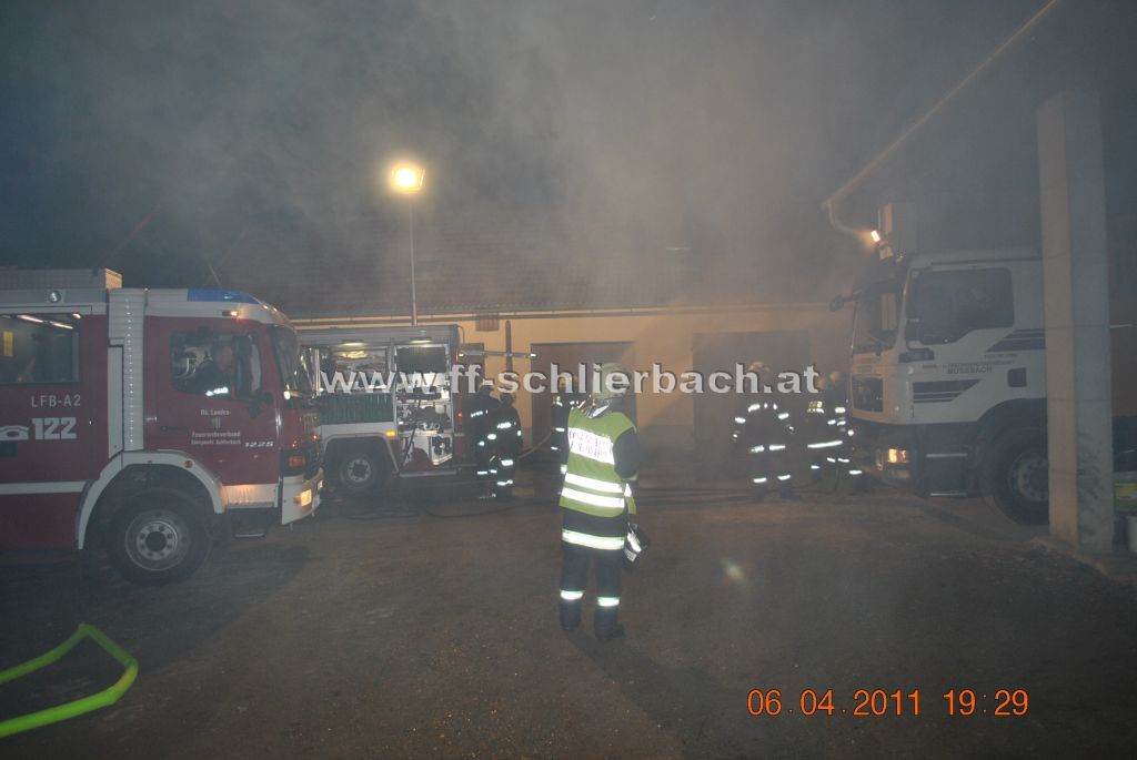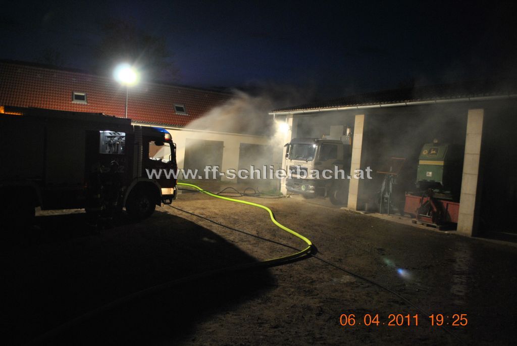 Übungsannahme war ein Brand in der nördlichen Garage beim landwirtschaftlichen Anwesen der Familie Achathaler. Vermutet wurde auch eine verletzte Person in der Garage.