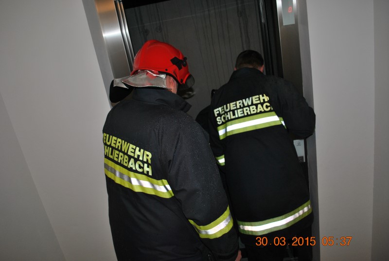Am 30. März wurden wir um 06.24 Uhr zu einem Schlierbacher Mehrparteienhaus zu einer eingeschlossenen Person im Lift alarmiert. Glücklicherweise blieb der Lift nicht zwischen zwei Stockwerken stecken, sondern nahezu im Erdgeschoß, somit beschränkte sich unsere Arbeit auf das Öffnen der Lifttüren mit dem Notfallschlüssel.