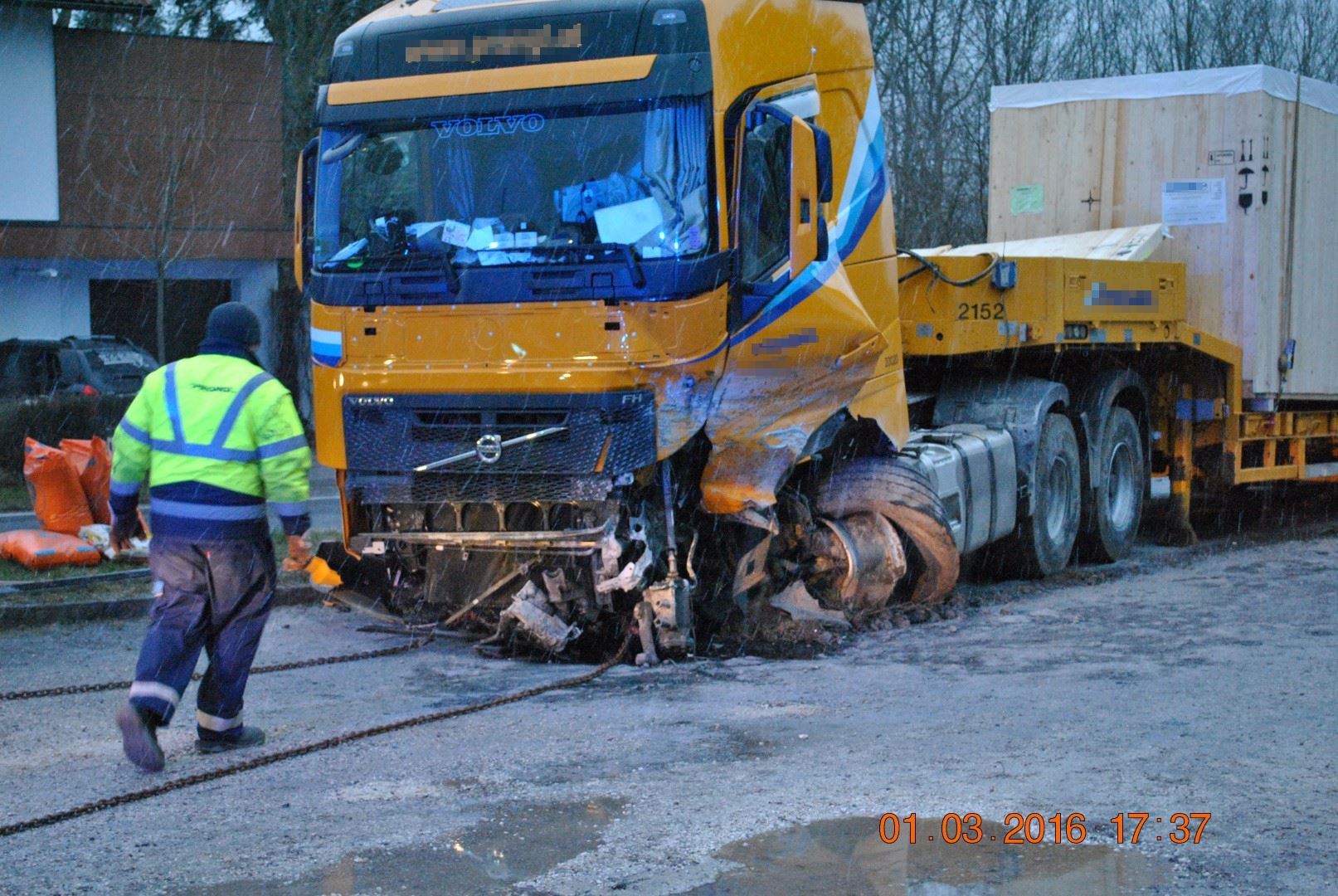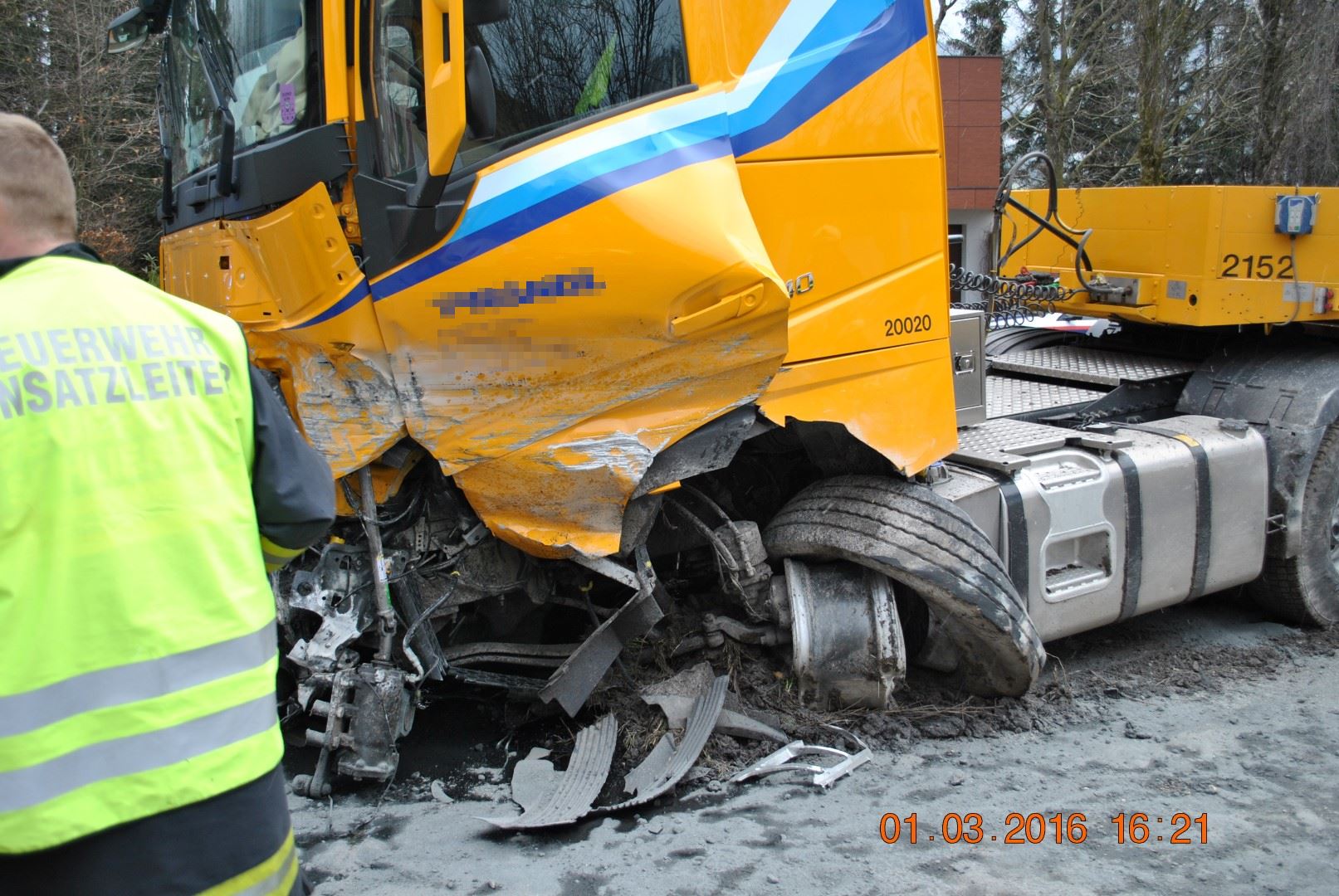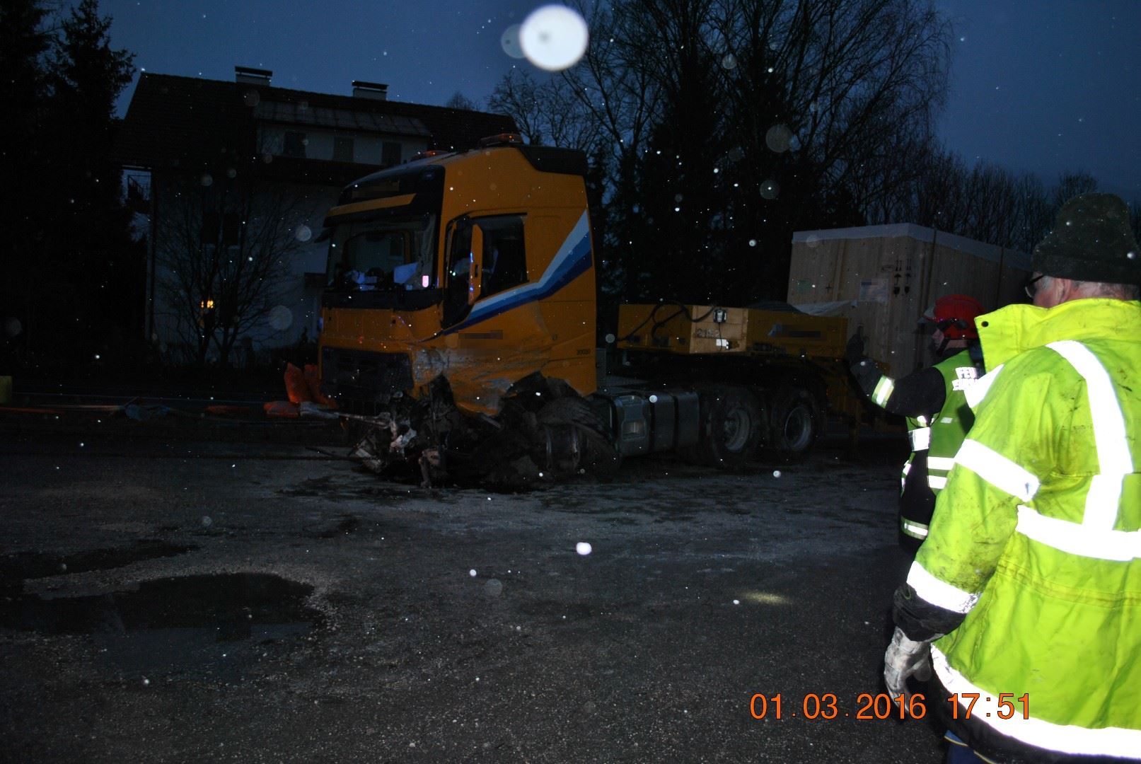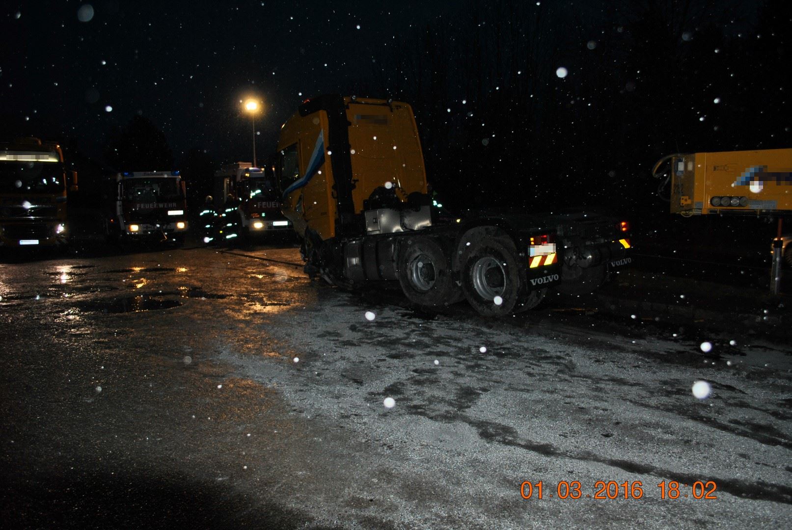 Unsere Aufgabe bestand darin die Straße zu reinigen, ausgelaufene Betriebsmittel zu binden, die PKWs von der Straße zu bergen und ebenso den LKW, welcher mithilfe der beiden Seilwinden von TLF-A2000 und LFB-A2, auf den Parkplatz gezogen wurde.