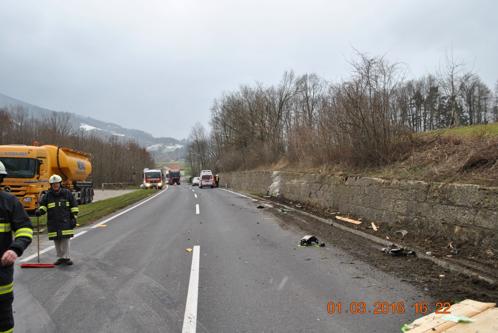 Am 1. März wurden wir um 16.00 Uhr zu einem Verkehrsunfall auf der B138 zwischen Inzersdorf und Kirchdorf alarmiert.